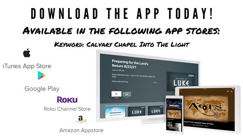 Here at Calvary Chapel Into The Light, we believe in going verse-by-verse, chapter-by-chapter, through the New Testament as well as the Old Testament. It is important to us that those in attendance be able to receive the full counsel of God.