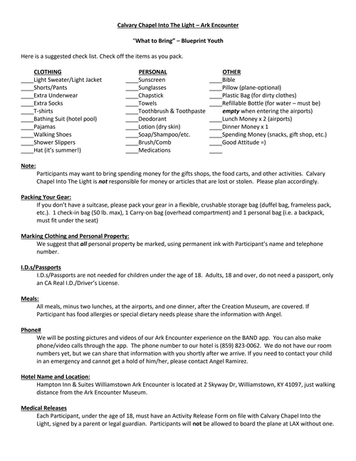 Ark Encounter Itinerary